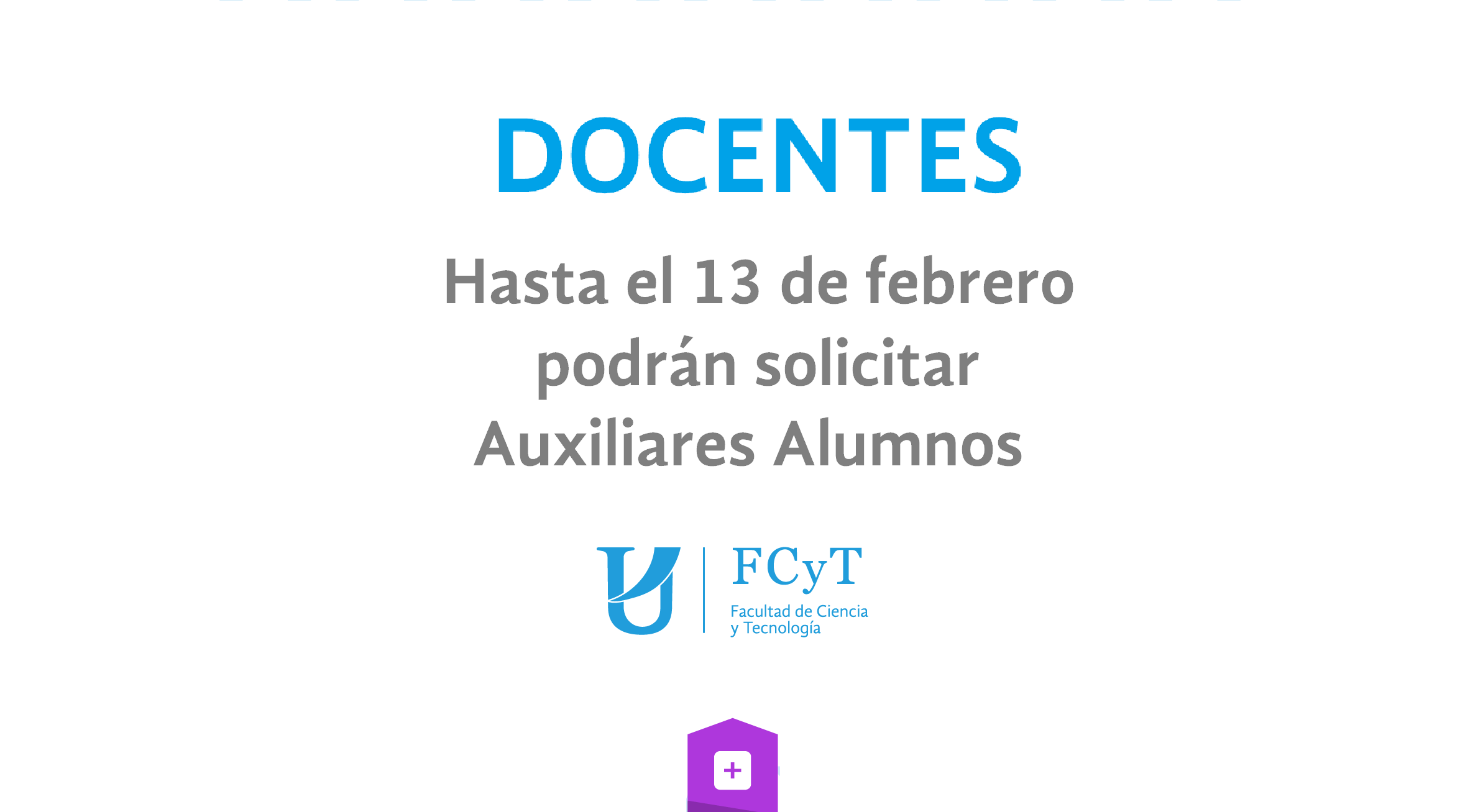 La Secretaría Académica informa que se encuentra habilitado el período para que las y los docentes presenten solicitudes de Auxiliares Alumnos en Cátedras, Proyectos o Laboratorios, conforme a lo establecido por la Resolución CD FCyT N.º 595/21. Las solicitudes podrán realizarse hasta el 13 de febrero de 2026.
