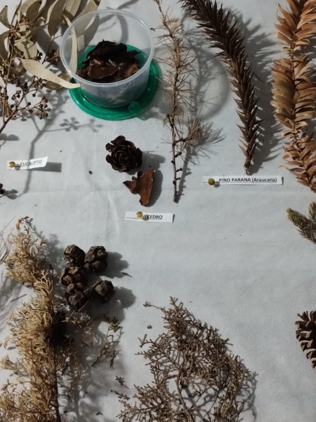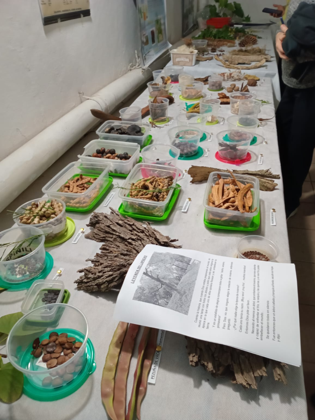 La actividad incluyó también una muestra de semillas, frutos secos, cortezas y hojas de especies nativas, junto con bibliografía especializada que invitó a profundizar en el conocimiento y valoración del patrimonio natural entrerriano.