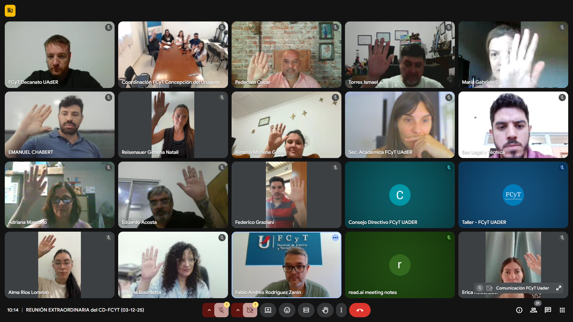 El Consejo Directivo de la Facultad de Ciencia y Tecnología aprobó por unanimidad el Informe de Gestión 2025, en una sesión extraordinaria que tuvo lugar este miércoles en forma virtual. El Decano, Abog. Esp. Juan Pablo Filipuzzi, agradeció el acompañamiento y compromiso de las sedes, extensiones áulicas y de cada una de las secretarías e instó a sus funcionarios a profundizar el trabajo en 2026.