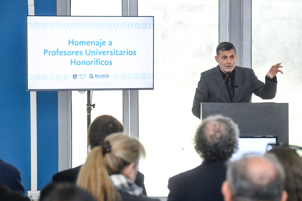 El acto, encabezado por el rector de la UADER, Abog. Luciano Filipuzzi, y el decano de la FCyT, Esp. Juan Pablo Filipuzzi, contó con la presencia de la vicedecana de la FCyT, Mg. Adriana Gras, autoridades universitarias, docentes, estudiantes, personal administrativo y familiares de los homenajeados.