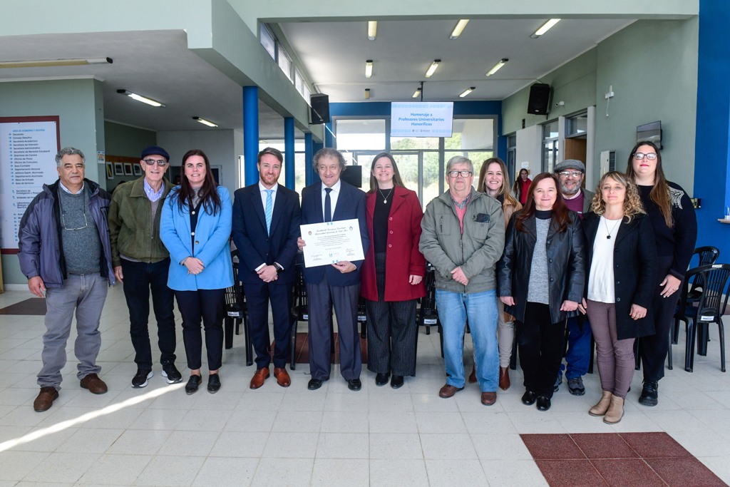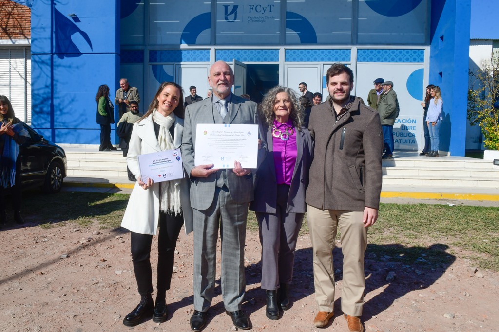 La distinción, de carácter excepcional y prevista en el Estatuto de la Universidad, reconoce a quienes, por su trayectoria, compromiso y valiosas contribuciones, han dejado una huella profunda en la comunidad académica y en la sociedad. La iniciativa fue impulsada por la FCyT en el marco del 25° aniversario de la Universidad, con el objetivo de honrar a quienes acompañaron desde los inicios el crecimiento y consolidación de esta casa de estudios.