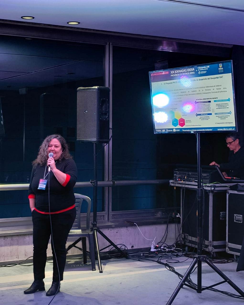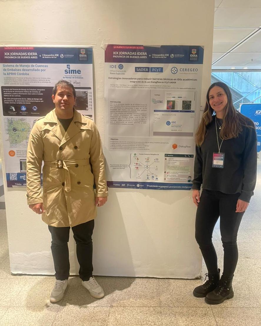 Durante el evento, el Lic. Santiago Díaz (docente de Licenciatura en Sistema de Información), y la Lic. Noelí Baeza (Integrante CEREGEO) presentaron los avances en la IDE de la FCyT  incluyendo la metodología para la incorporación de un Bot que se integrará al desarrollo existente.