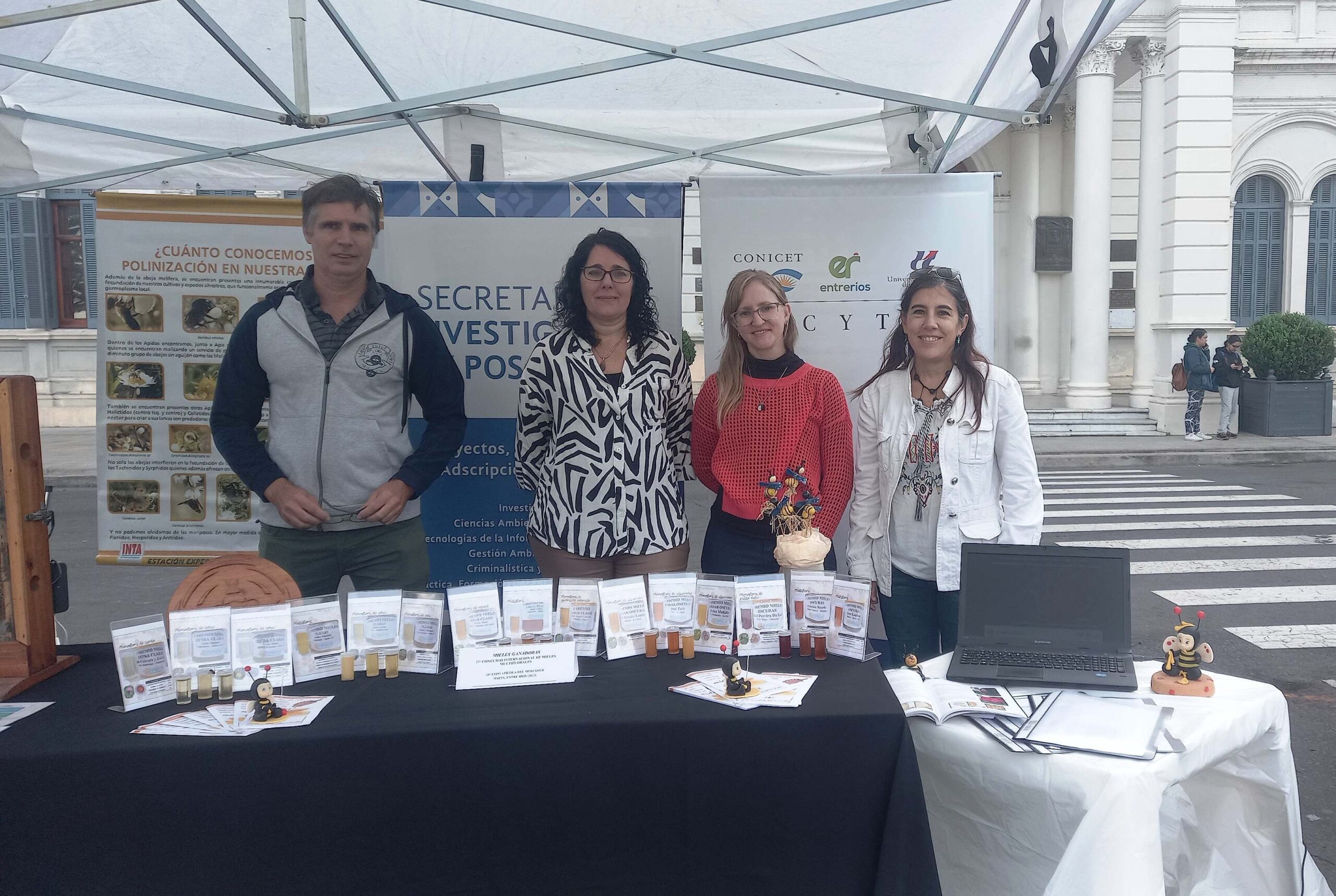 Investigadores e investigadoras del Laboratorio de Actuopalinología participaron de la apertura de la Semana Nacional de la Miel, que se realizó el 14 de mayo en la explanada de la Casa de Gobierno de la Provincia de Entre Ríos.