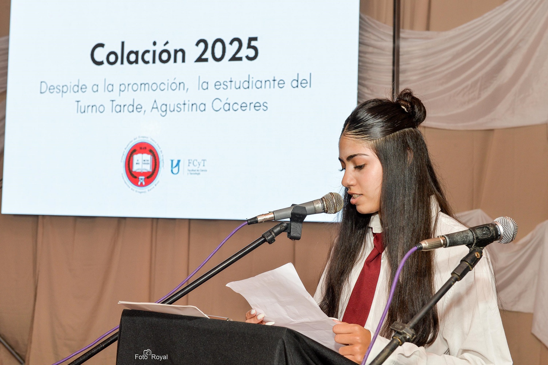 Durante la ceremonia, que contó con la presencia del Decano de la FCyT, Abog. Esp. Juan Pablo Filipuzzi, autoridades locales y de la universidad provincial, se otorgaron los diplomas y reconocimientos a quienes integran la promoción 2025; y los primeros títulos digitales.