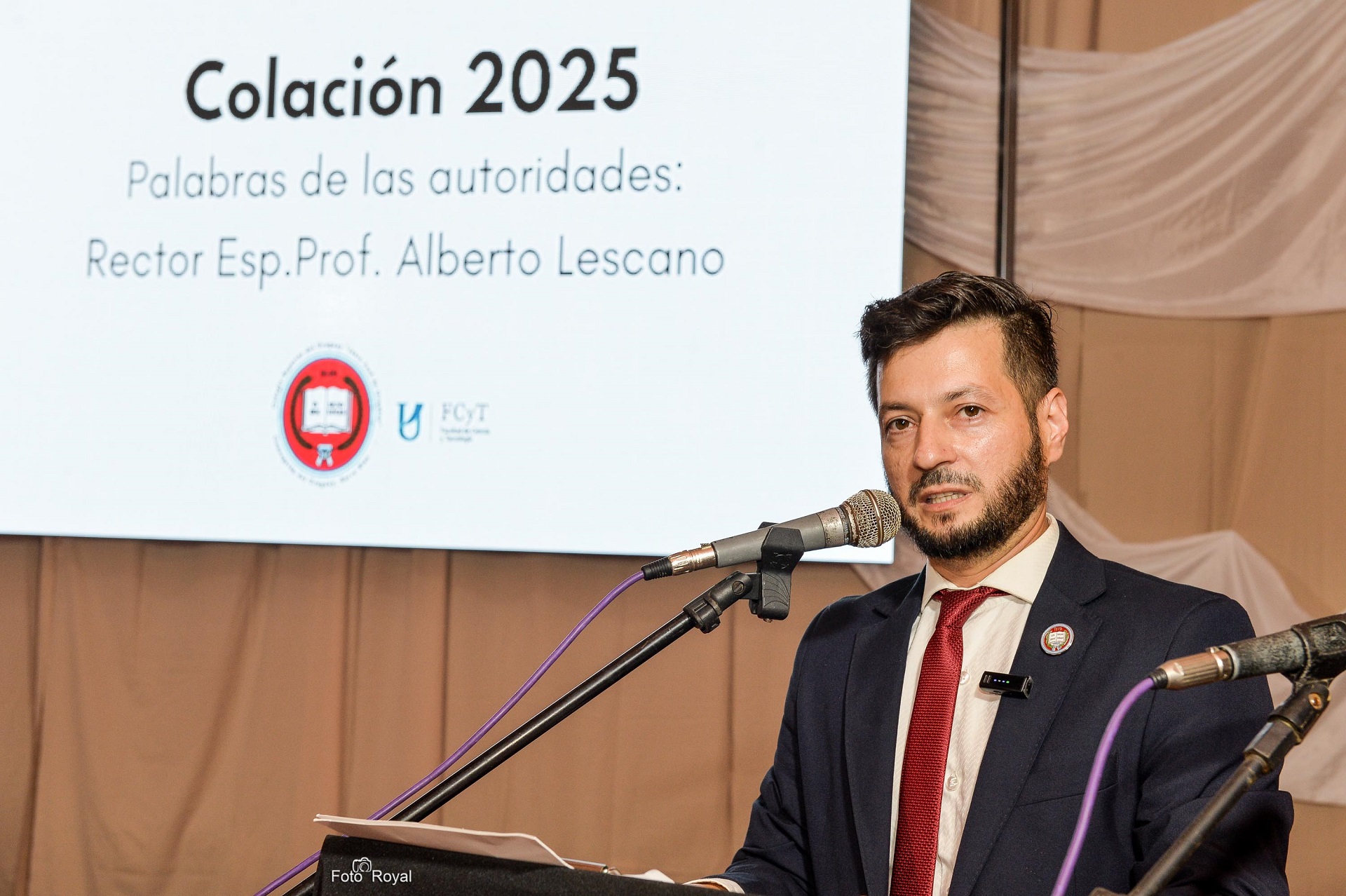 A su turno, el rector del Colegio Superior del Uruguay, Prof. Alberto Lescano, agradeció el acompañamiento de docentes, personal administrativo en el proceso de reordenamiento administrativo, académico e institucional de la institución; y, especialmente, a padres y madres de los egresados por la paciencia en el proceso.