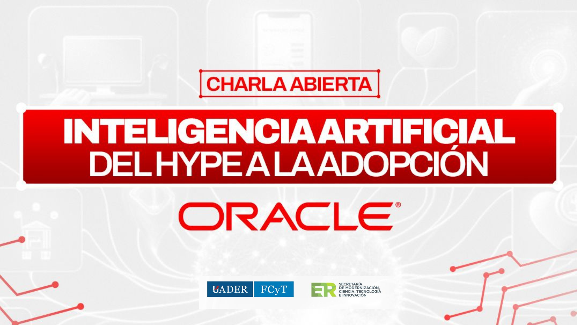 La Facultad de Ciencia y Tecnología, en conjunto con la Secretaría de Modernización, Ciencia, Tecnología e Innovación de Entre Ríos, invita a participar de la charla “Inteligencia artificial: del hype a la adopción”, que se llevará a cabo el martes 14 de abril a las 15:30 en el Salón de Usos Múltiples de la Sede Central Oro Verde.