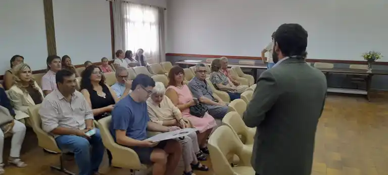 La actividad reunió a autoridades culturales, representantes del ámbito científico, profesionales de la salud y público en general, y tuvo como eje central el reconocimiento a la doctora Regina Gurovich, primera médica mujer de Gualeguay y del Hospital San Antonio. La coordinadora de la extensión áulica de la FCyT, Abog. Marina Ahibe, asistió en representación del decano, Esp. Abog. Juan Pablo Filipuzzi.