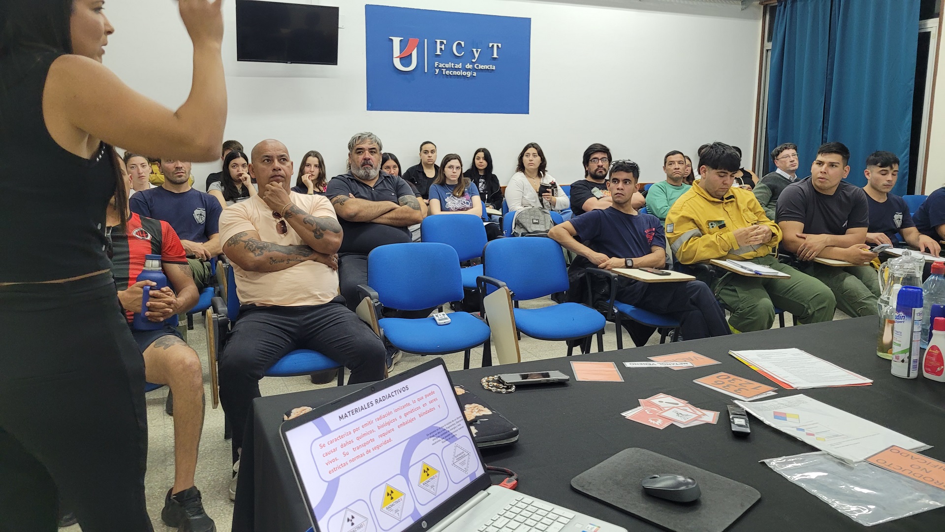 La Facultad de Ciencia y Tecnología fue el epicentro de una charla sobre los riesgos y aspectos técnicos y legales que implica el transporte de sustancias peligrosas en Argentina, a cargo de Noelia Benavidez, graduada de la casa de estudios, licenciada en Criminalística y técnica en Accidentología Vial.